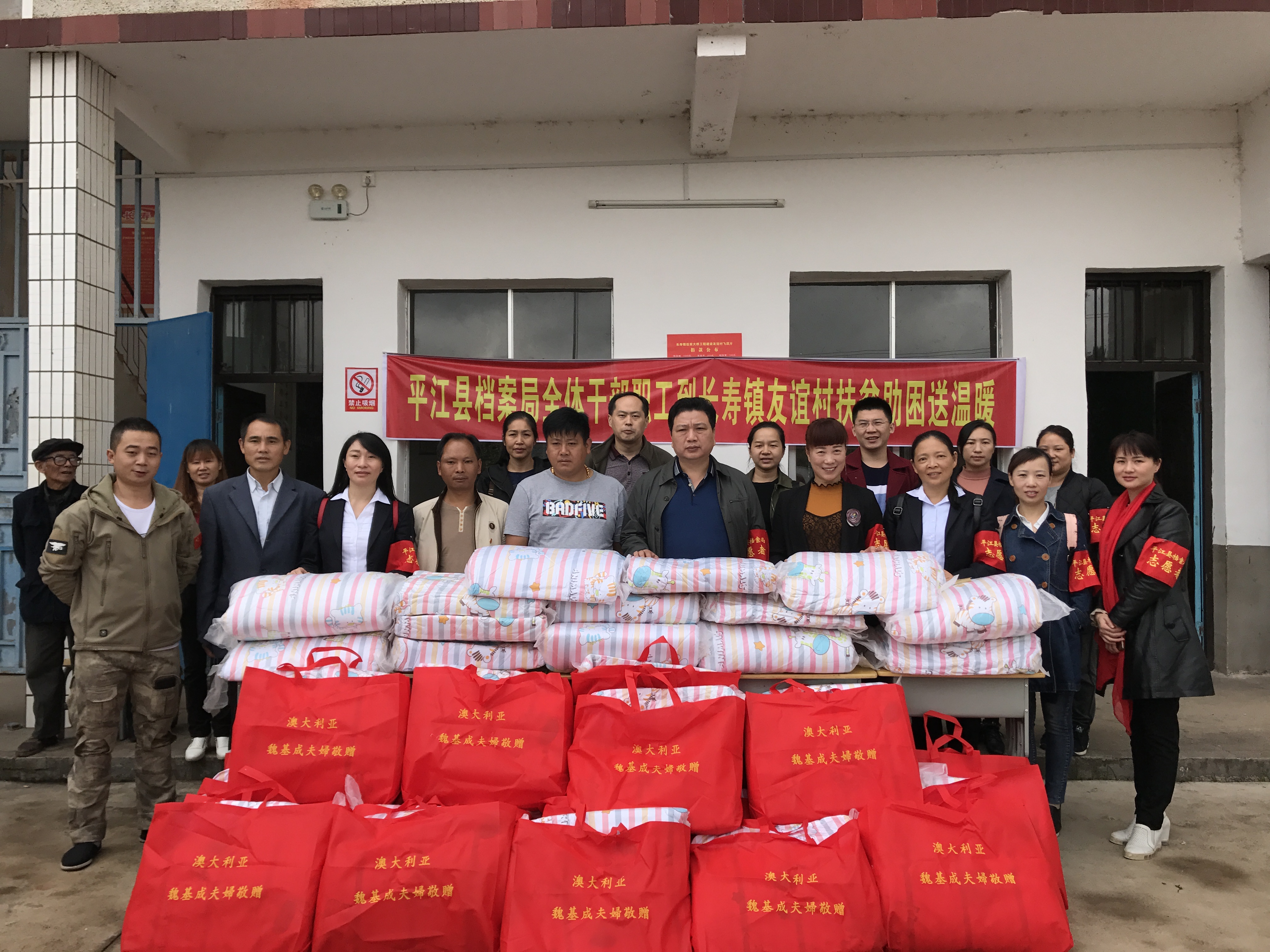 近日,平江县档案局全体干部职工在局长段曙光、分管副局长彭曙红的带领下,来到平江县长寿镇友谊村,对全村38户建档立卡未脱贫户进行走访慰问。