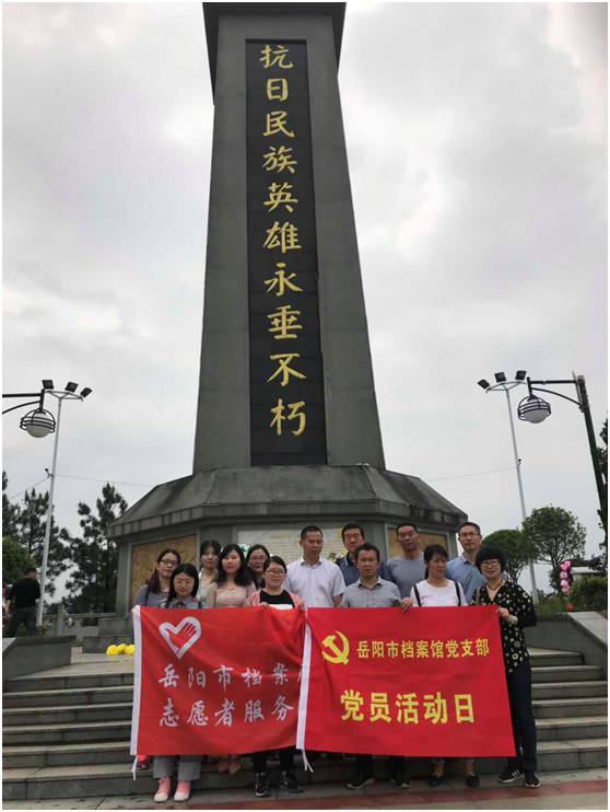 4月25日,在市档案馆党组书记、馆长余友安带领下,岳阳市档案馆干部职工一行,奔赴革命老区平江开展“党员活动日”暨“五四青年”系列活动。在南江镇露江山抗日英雄纪念园,大家向纪念碑敬献花篮花圈,向抗日先烈鞠躬致敬,聆听讲解员慷慨激扬的解说,一起追忆历史,缅怀先烈。