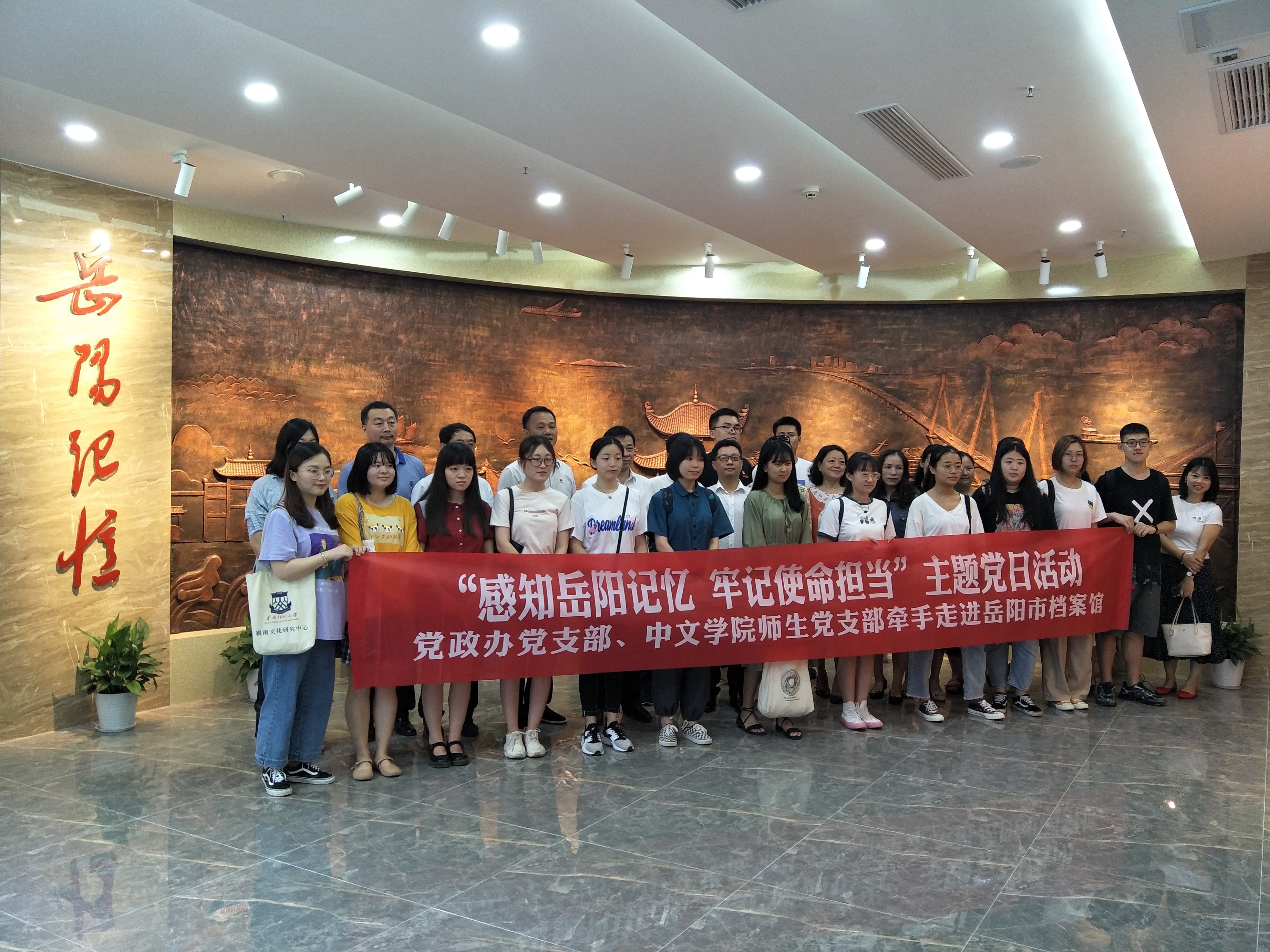 6月11日上午,在湖南理工学院党委书记李明带领下,该院党政办支部和中文学院学生党员30多人,来到岳阳市档案馆开展“感知岳阳记忆、牢记使命担当”主题党日活动。
