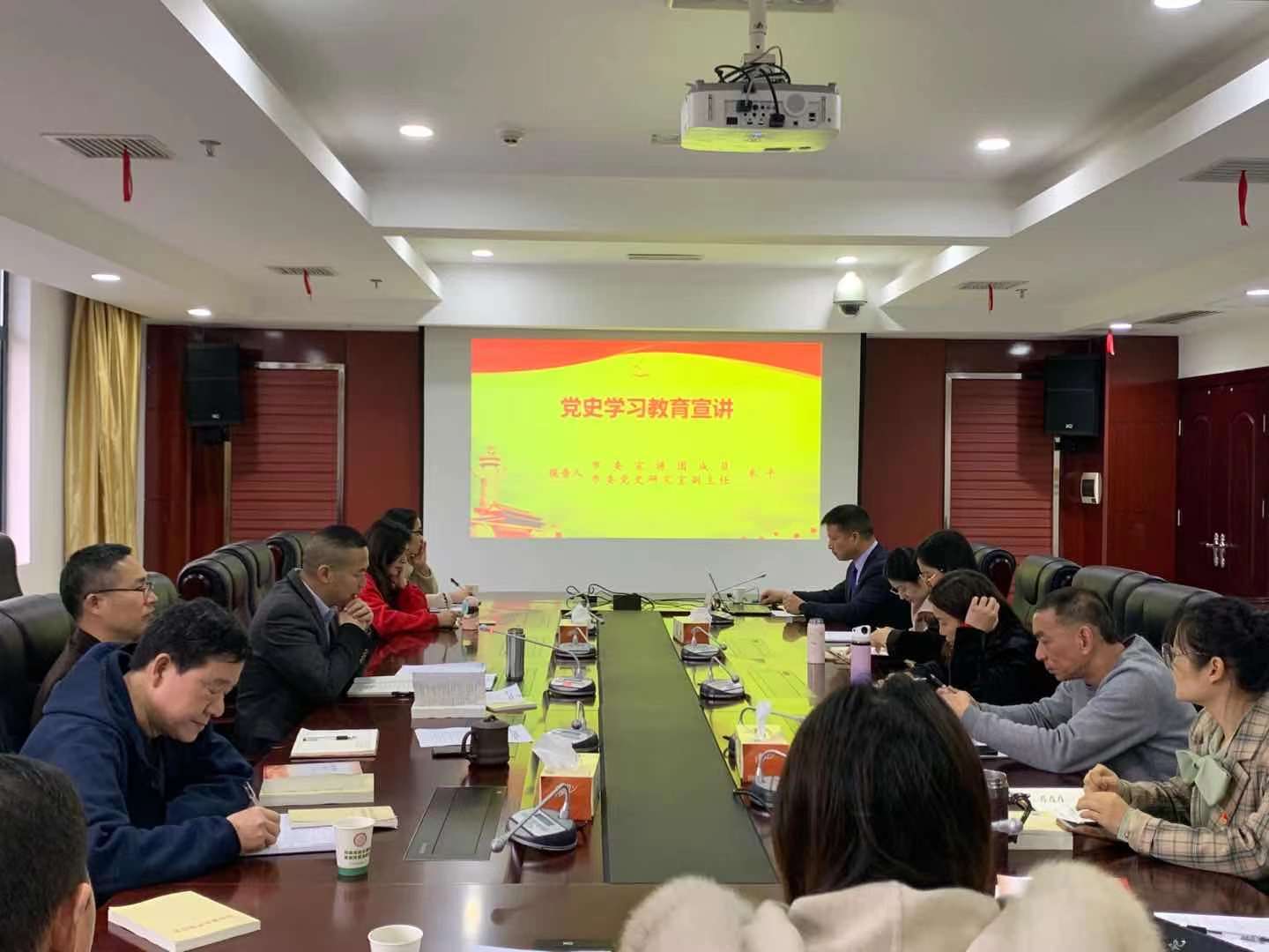 4月16日,市档案馆举行党史学习教育专家宣讲会暨理论学习中心组集体学习,邀请市委党史学习教育宣讲团专家、市委党史研究室副主任朱平进行党史学习教育专题宣讲,全馆在职干部职工和退休老党员代表参加会议。