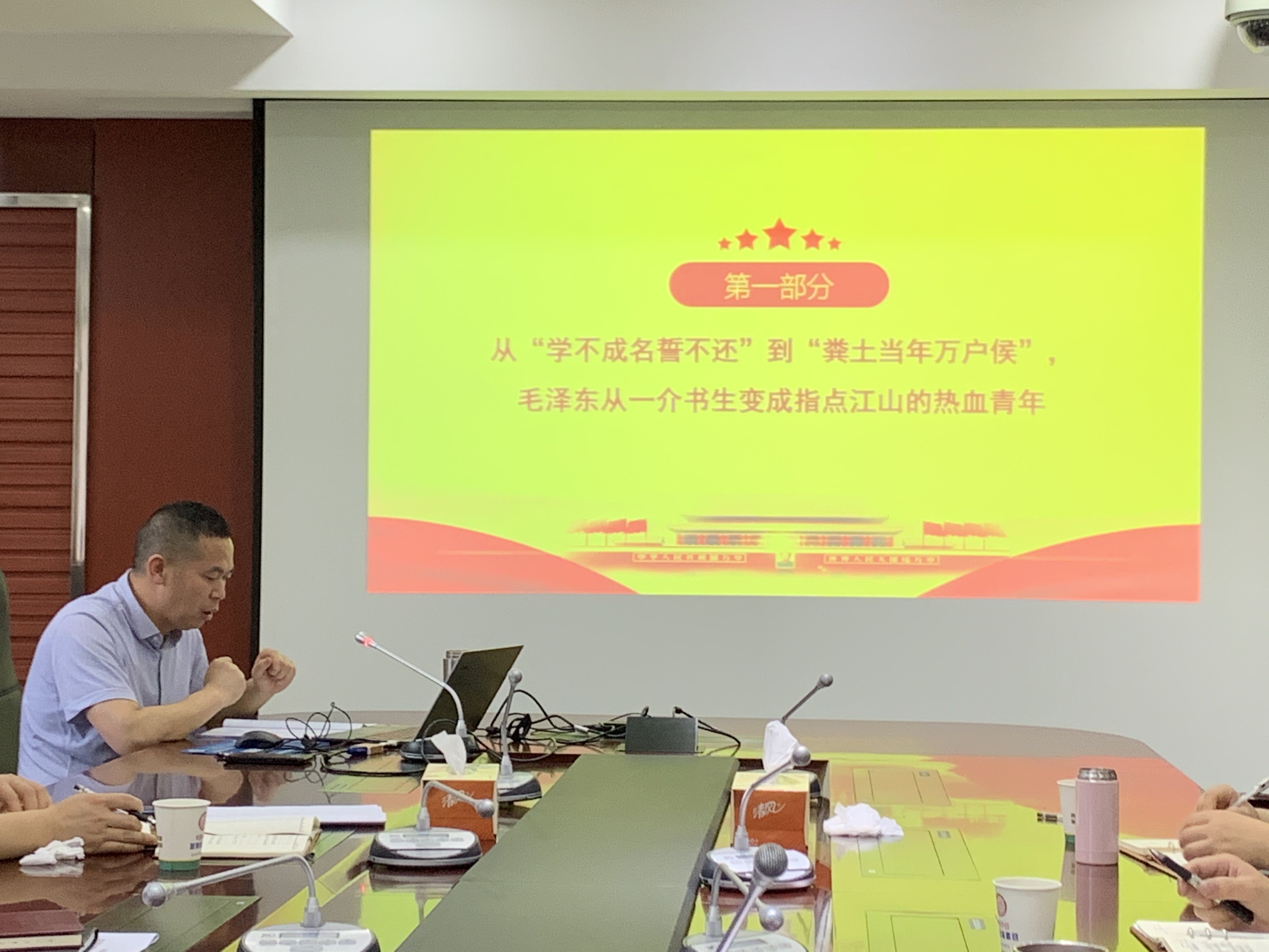 5月21日,岳阳市档案馆党组书记、馆长余友安以《品读毛泽东诗词 感悟共产党初心》为题,为全馆同志讲了一堂“学史崇德”专题党课。