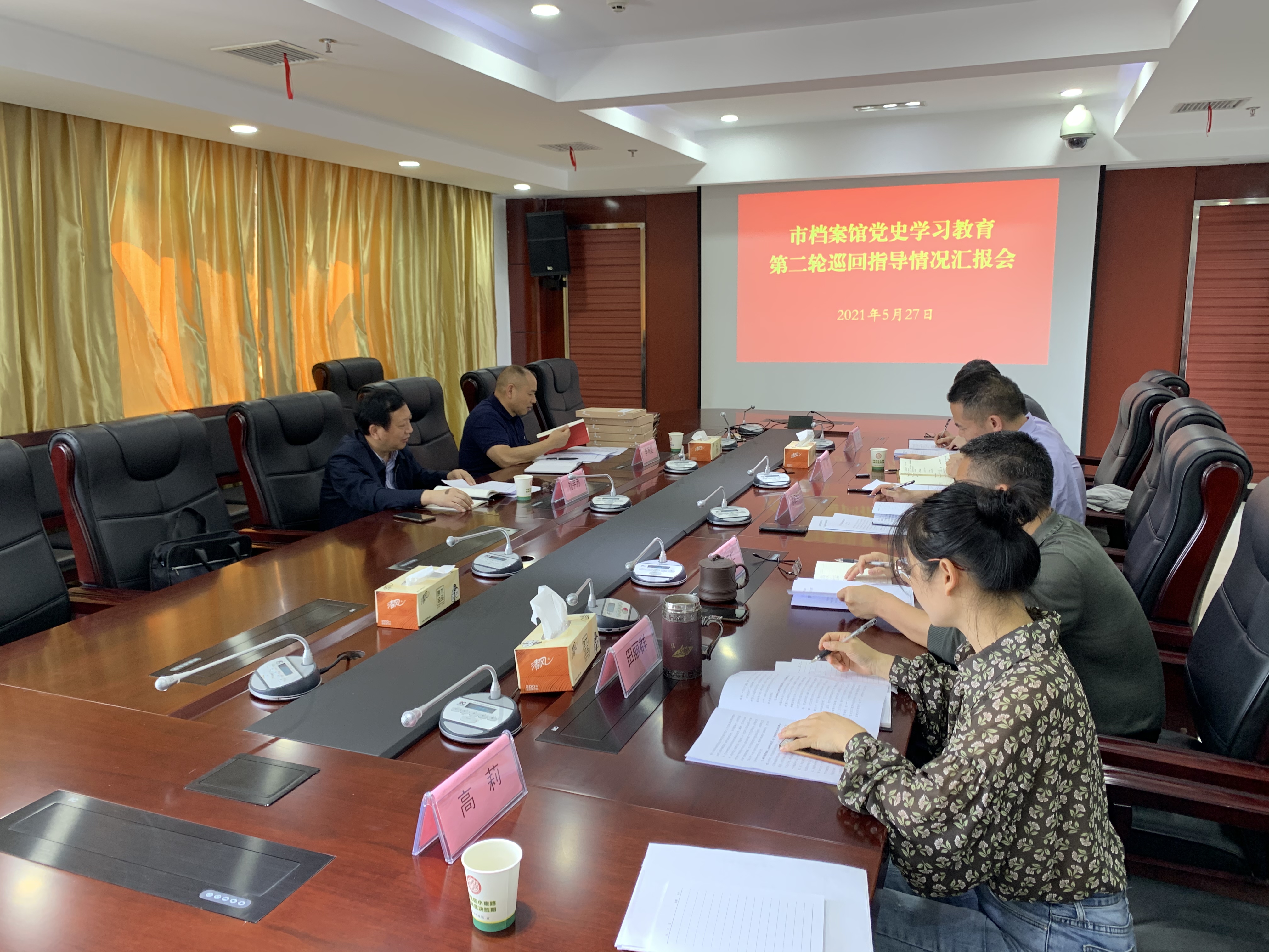 市档案馆党组书记、馆长余友安汇报了前段党史学习教育情况。自3月份党史学习教育开展以来,市档案馆既做好“规定动作”,又做好“自选动作”:提高政治站位,强化责任担当,思想上高度重视,组织上统筹谋划,责任上主动担当,氛围上渲染推介;把握关键环节,认真抓好党史学习,深入开展集中研讨,认真组织主题活动,踊跃参加相关活动;认真办好实事,深度开发档案资源,提升档案查询、业务咨询质量,加强红色档案资源收集征集,进一步做好为民办实事工作,取得了阶段性成效。后段,市档案馆将继续强化政治担当,扛牢政治责任,深化学教活动,打造工作亮点,推动活动往深里走、往心里走、往实里走。