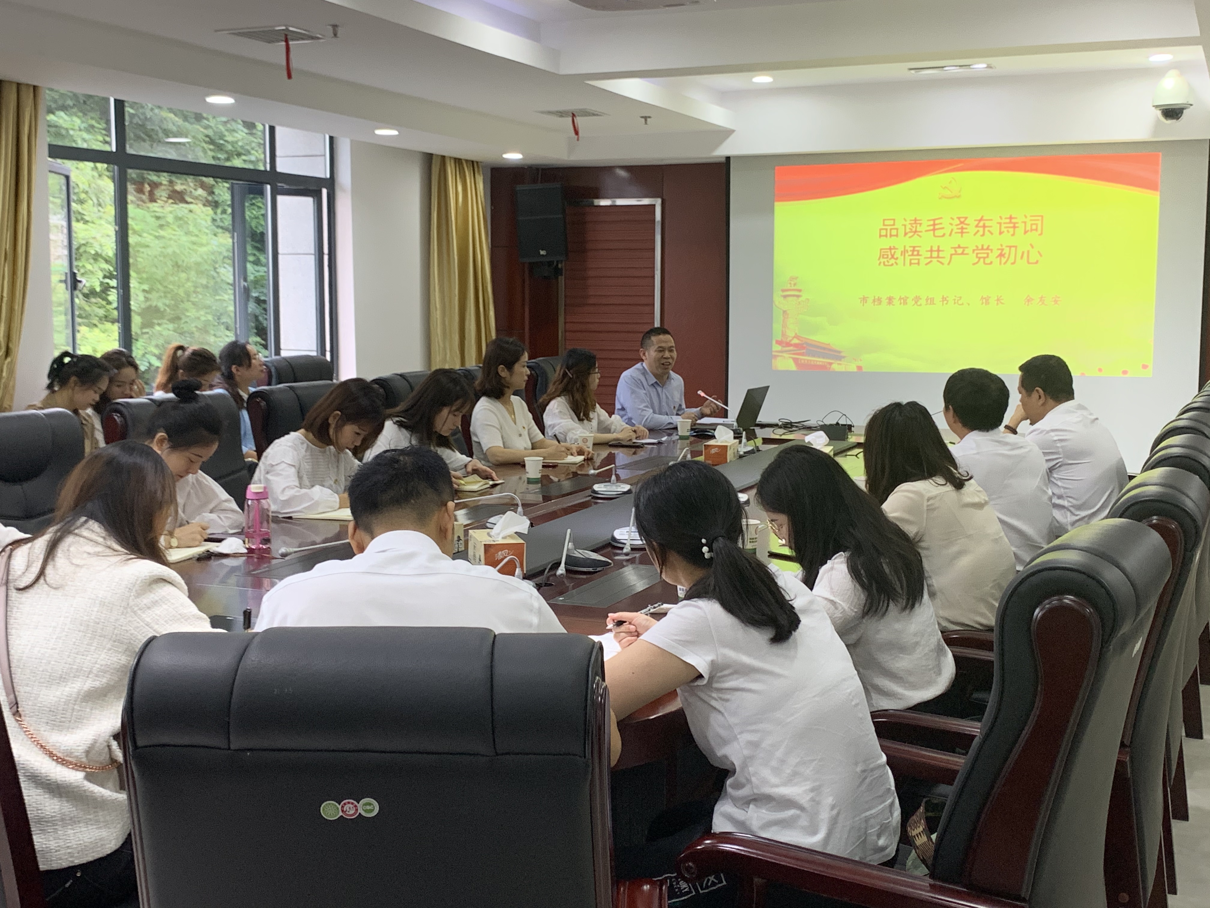 随后,市档案馆党组书记、馆长余友安给老师们上了一堂题为《品读毛泽东诗词 感悟共产党初心》的专题党课。他从“初心”由来开始,诠释了中国共产党人的初心使命,再以毛泽东诗词为载体,从历史、实践、人民和品格四个维度,细细品读了毛泽东诗词中所体现的人生观、价值观等,进而深入分析了毛泽东救国救民初心形成历程,全面解读了中国共产党人的初心使命,并号召大家多读经典,学习党史,立德树人,传承红色基因,培育时代新人。