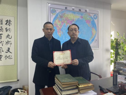 市档案馆党组书记、馆长余友安为捐赠者代表湖南理工学院中文学院黄去非教授颁发证书,充分肯定了捐赠的档案资料对地方文化研究的重要价值。
