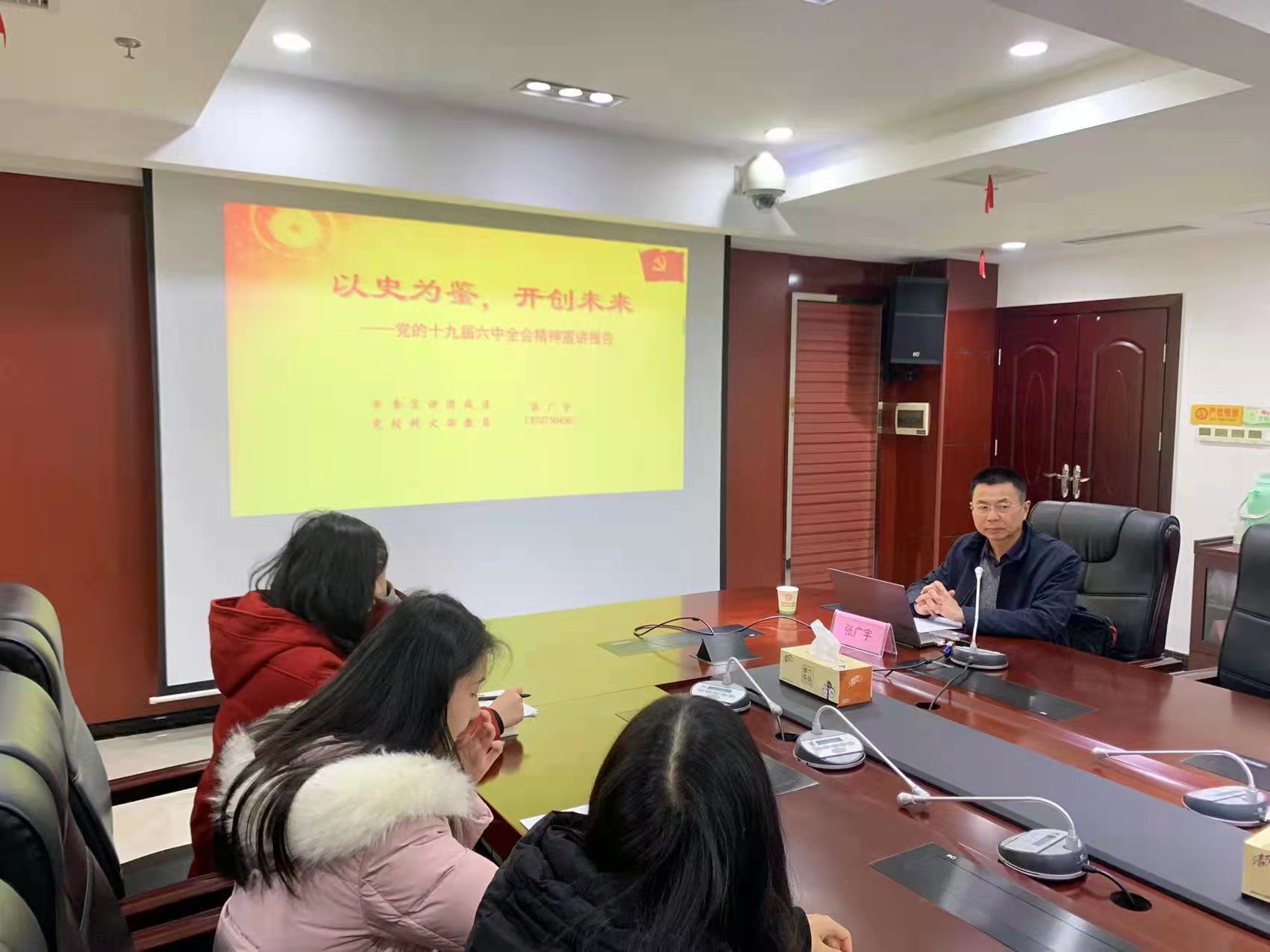12月17日下午,市档案馆举行党的十九届六中全会精神市委宣讲团报告会。市委党校科教部主任、市委宣讲团成员张广宇副教授作宣讲报告,市档案馆党组书记、馆长余友安主持,市档案馆全体干部职工和湖南理工学院南湖学院在馆实习生参加。