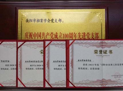 3月16日,在岳阳市社会科学界联合会第四届二次全会上,岳阳市档案学会喜获多项荣誉:学会和单位会员周令钊美术馆同时被评为岳阳市2021年度社科工作先进单位,学会党支部被评为年度岳阳社科类社会组织先进党支部(标杆党组织),理事会成员余友安、傅电仁、段曙光3人被评为全市先进社科工作者。