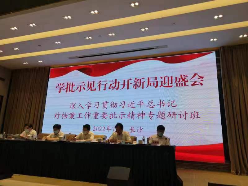 经济发展,档案同行。7月6-7号,湖南省档案局、省档案馆联合举办了题为“学批示、见行动、开新局、迎盛会”深入学习贯彻习近平总书记对档案工作重要批示精神专题研讨班。馆党组书记、馆长余友安对会议精神进行了学习贯彻,重点传达了省委副秘书长、省档案局长施亚雄同志以“深入学习贯彻习近平总书记重要指示批示精神,努力推动湖南档案事业高质量发展”为题所作专题辅导报告;传达学习了省档案馆党组书记、馆长叶建军同志围绕深入学习贯彻习近平总书记重要批示精神,就“做好新时代档案的开发利用”所作专题讲座。号召大家要深入学习贯彻习近平总书记重要批示精神,聚焦重点和特色,加强档案资源建设;深挖红色资源,生动讲好红色档案故事;找准服务中心大局的着力点和切入点,提升档案工作影响力。