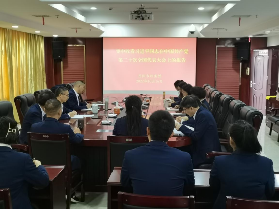 10月16日上午9点多,市档案馆全馆23名干部职工着正装,党员佩戴党徽,准备好笔记本,早早地坐在四楼会议室,集中收看党的二十大开幕盛况。