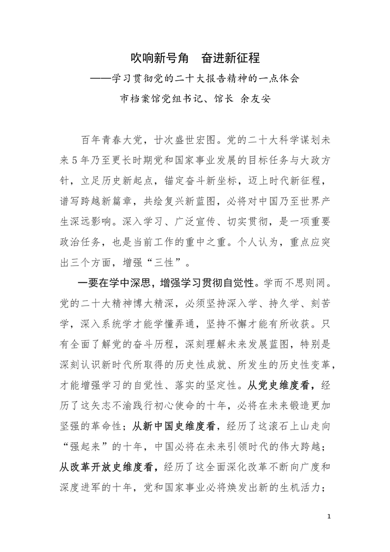 吹响新号角 奋进新征程——学习贯彻党的二十大报告精神的一点体会