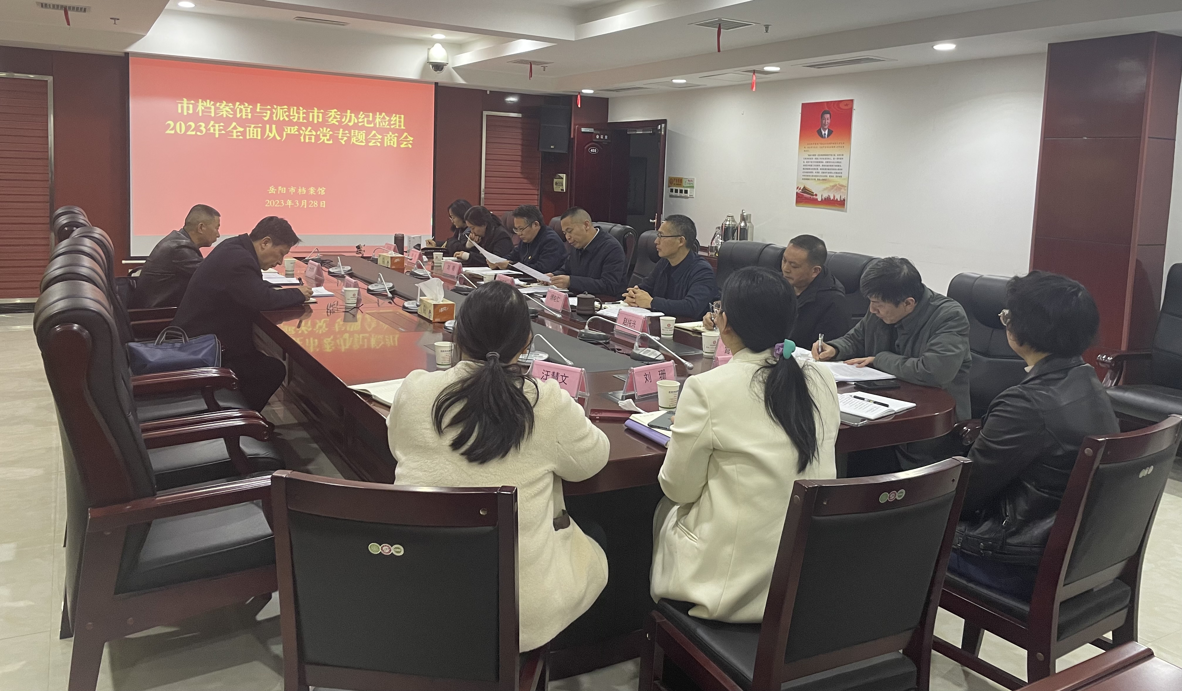 3月28日晚,市档案馆党组联合市纪委监委驻市委办纪检监察组,就全面从严治党工作举行专题会商会。馆党组书记、馆长余友安主持会议,馆班子成员和纪检监察组正副组长参加,馆各科室负责人和纪检联络员列席。