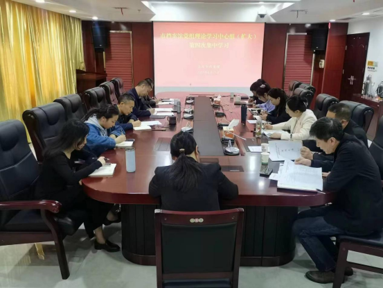 4月27日上午,岳阳市档案馆党组理论学习中心组(扩大)开展第四次集中学习,馆党组书记、馆长余友安主持会议,全馆干部职工和湖南理工学院13名实习生参加。