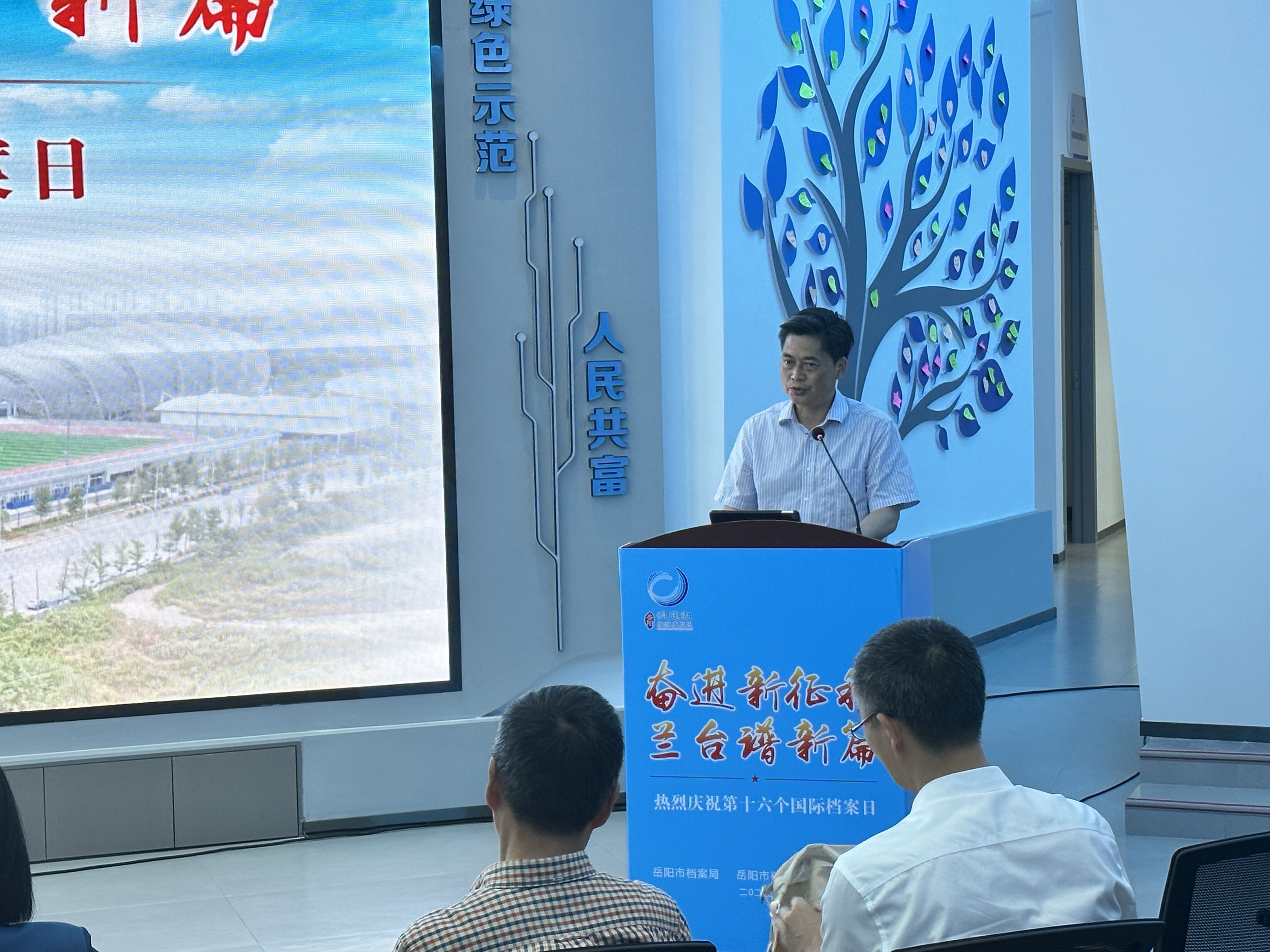 赵岳平对活动举办表示热烈祝贺,对默默奉献的兰台人表示由衷敬意。他表示,档案是文化和精神传承的重要载体,这次活动以“档案里的岳阳精神”为主题,紧贴档案实际,紧扣现实需求。岳阳市早在1990年第二次党代会上就明确了“先忧后乐、团结求索”的岳阳精神,作为档案工作同志,不能忘记屈原、范仲淹这些先贤先辈,应加强档案收集与研究,不断挖掘、阐述和丰富岳阳精神内涵;新时代档案工作更应着眼存史、资政、育人,为弘扬精神、参谋资政、加强宣传奉献档案智慧与力量,做到以档案工作的高水平建设,为现代化岳阳高质量发展赋能添彩。