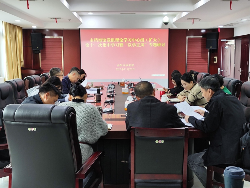 11月23日上午,岳阳市档案馆举行党组理论学习中心组(扩大)第十一次集中学习,馆党组书记、馆长余友安主持,全馆干部职工、湖南理工学院在馆实习生参加。