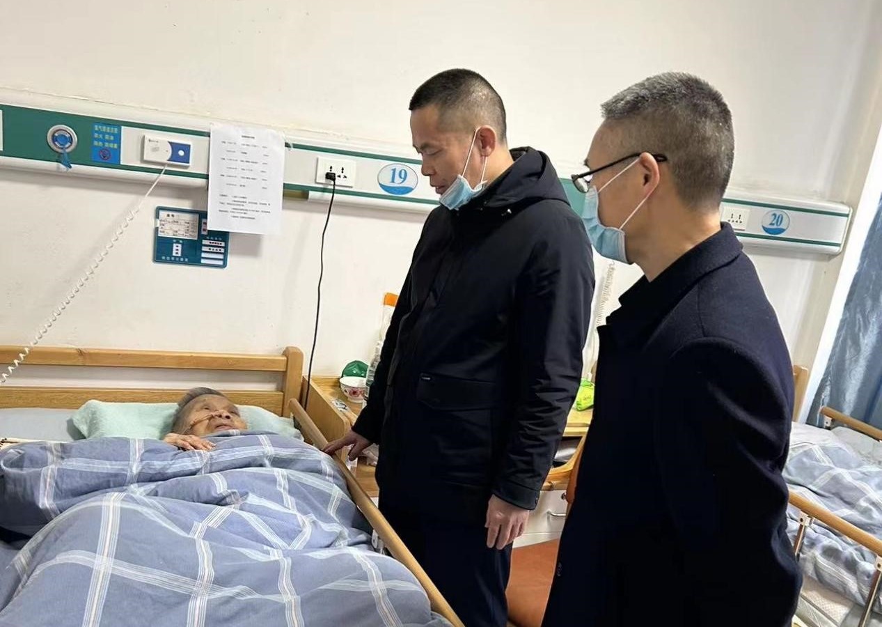 走进海福祥养老护理院,余友安来到90高龄卧病的胥淑英老人床前,详细了解起她的病情、身体康复及家庭情况等,询问还有什么生活困难,并送上慰问金,“要过年了,我们来看看您,衷心感谢您为档案事业所作的贡献,并提前给您拜年!”余友安鼓励胥老保持乐观精神,战胜疾病,早日康复。随后,一行人来到其他3位老党员家走访慰问。每到一处,都与老同志唠唠家常,询问生活起居和健康状况等情况,耐心倾听大家的所需所盼,并送去组织关心,送上新春祝福。对不在岳阳的老同志,则通过电话、微信开展慰问,感谢他们过去为档案事业所作贡献,祝福他们新年健康快乐。老同志纷纷表示,馆领导冒着严寒来看望慰问自己,爱老尊老之情让人深受感动、备受鼓舞,他们将保持积极乐观心态,早日战胜困难,继续发挥自身余热,一如既往地支持档案工作,用实际行动报答组织的关怀。