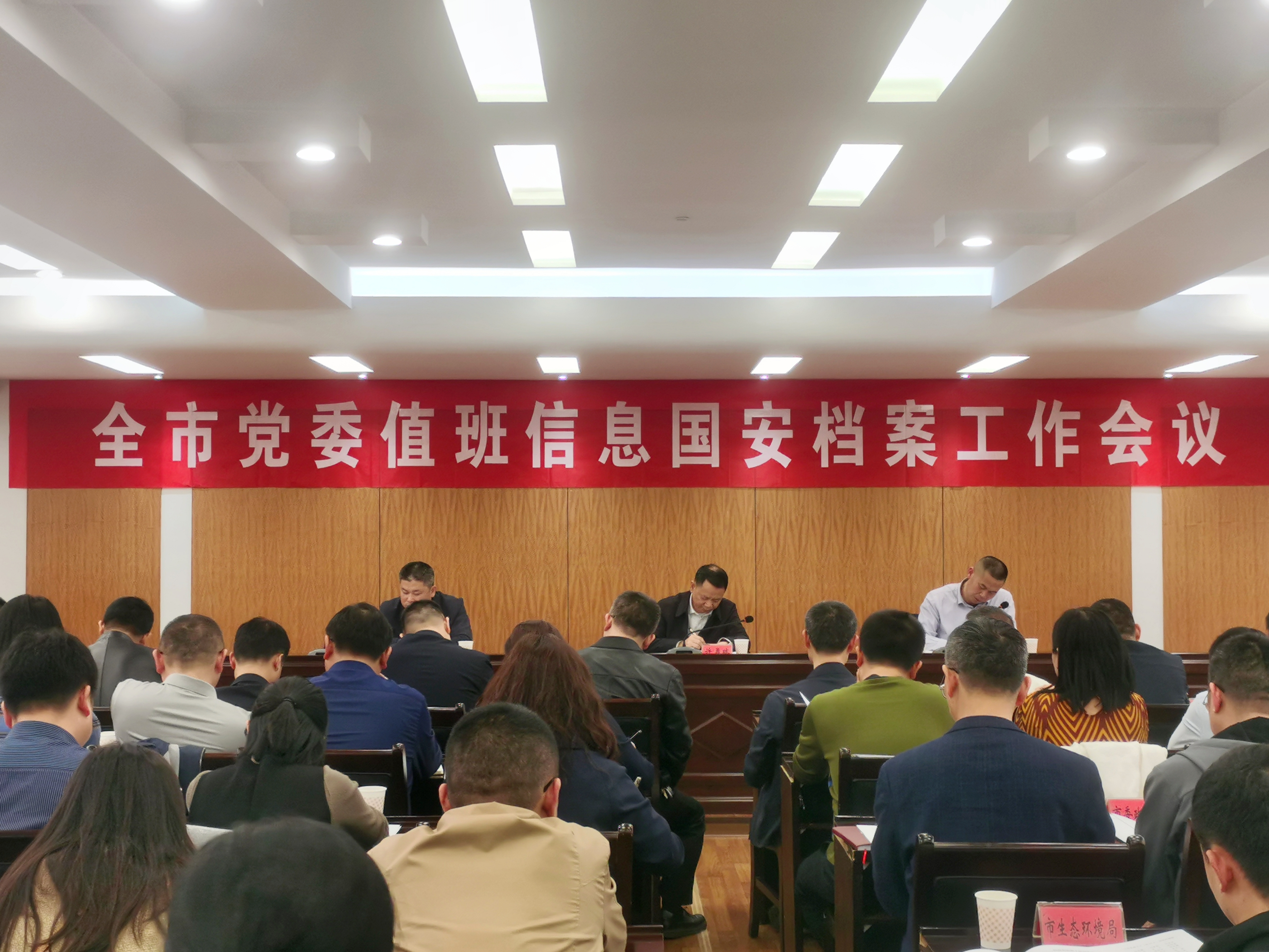 市委副秘书长许勇球、市委办副主任吴雄文出席会议,并分别就档案和值班、信息、国安工作进行部署讲话,市委秘书长办公会成员、市档案馆党组书记、馆长余友安主持会议,市档案馆班子成员、市委办四级调研员及相关科室工作人员、市直有关单位办公室主任、县市区委办分管副主任、档案馆馆长参加会议。平江县委办、岳阳楼区档案馆等7家单位分别就信息值班和档案工作进行交流发言。