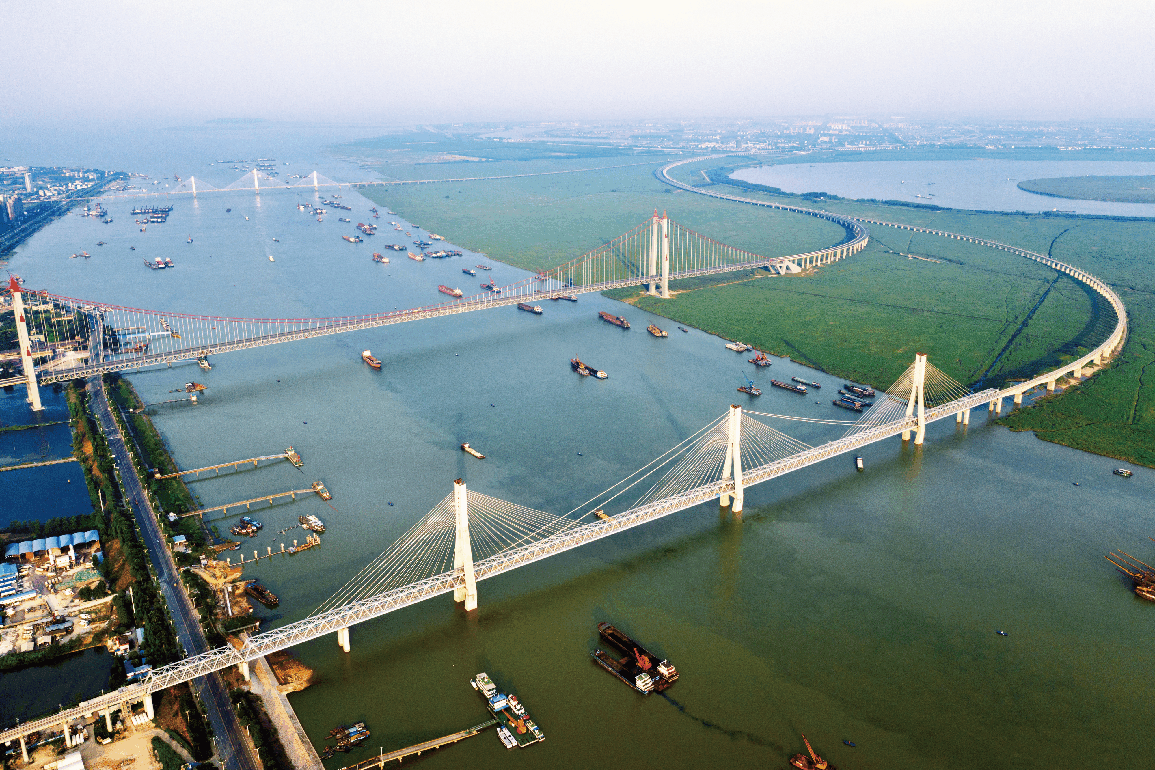 “一桥飞架联东西,洞庭天堑变通途。”2000年12月26日,历经4年奋战,全长18868.82米的洞庭湖大桥建成通车。这座亚洲首座三塔斜拉桥,以130+2×310+130米的主跨设计,既保障通航泄洪,又与千古名楼岳阳楼遥相呼应。往日一小时以上的轮渡路程,至此缩短为十几分钟,日均车流量突破3万台次。