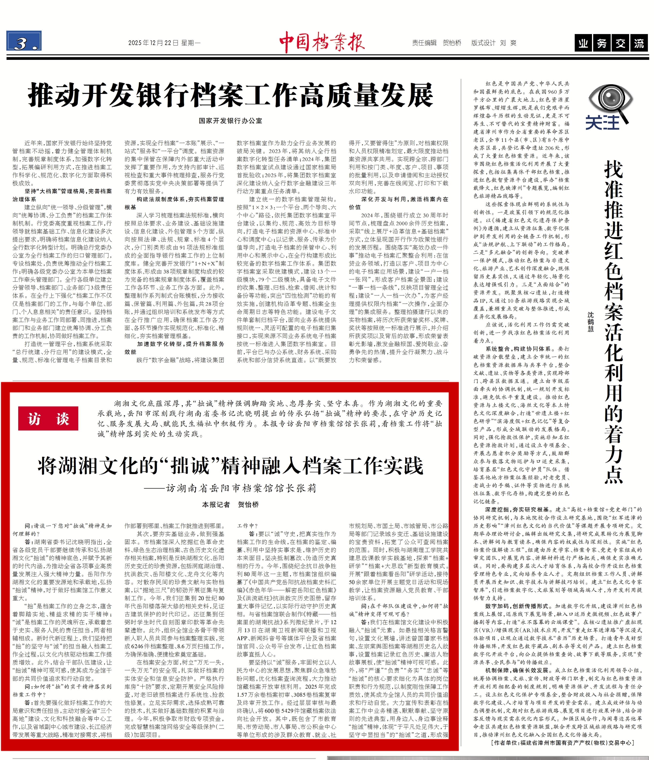 张莉馆长接受《中国档案报》记者专访:将湖湘文化的“拙诚”精神融入档案工作实践