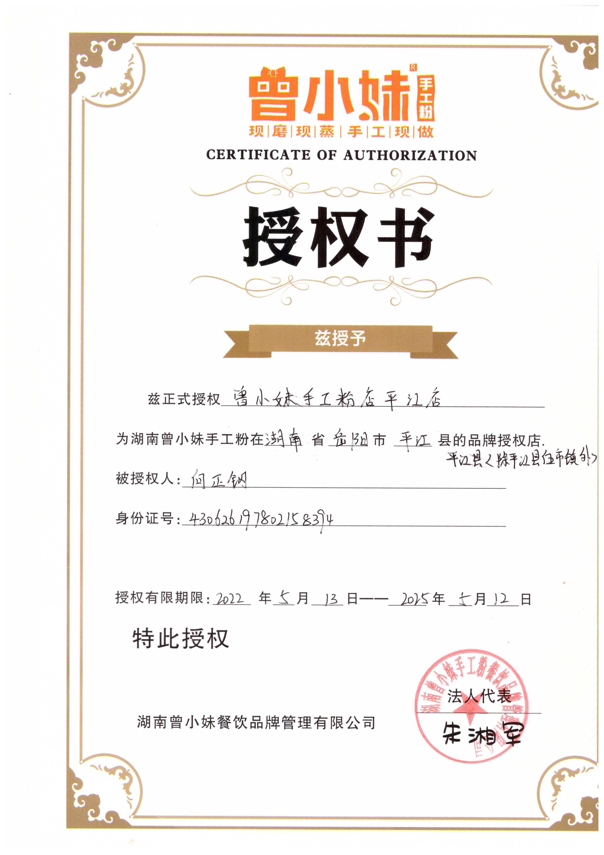 品牌注册商标是“曾小妹手工粉“,而实际给加盟商与顾客提供的是其它厂代加工的机制米粉,自始没有见到过有手工粉的加工及产品。 4、