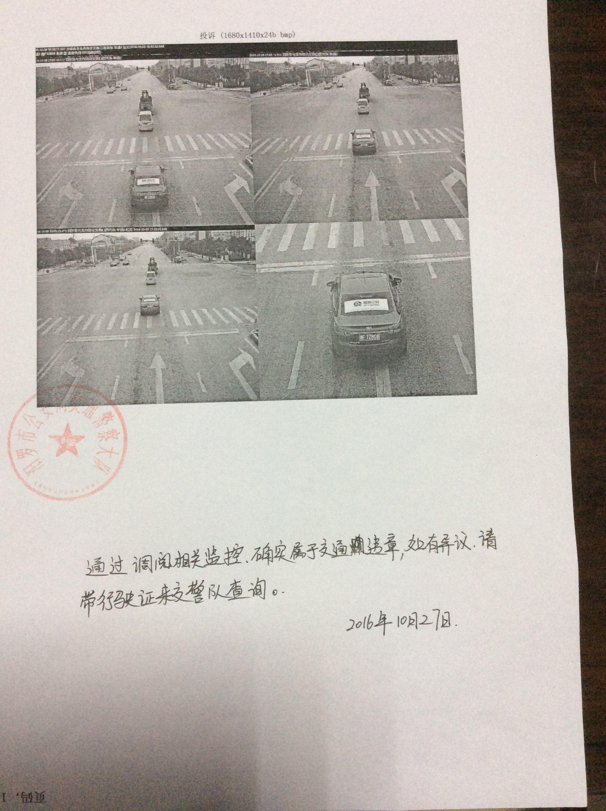 再次反馈: 请领导部门保存2016年10月8日15:01分-05分该路口的双向监控视频,下周一我会过来交警大队查询的,只有视频才能还原我所反映的真实情况。拍照根本就看不到我一开始是跟在前面两台车后面等待红灯,也没看到当我跟着前2台车屁股后面走发现是红灯时,及时停住在路口等待的真实性。